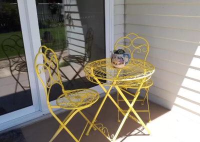 Our backyard is secure for children to play. Children can jump on the trampoline, feed our friendly chickens and collect their delicious eggs for their breakfast. We have a selection of family DVDs to choose from.